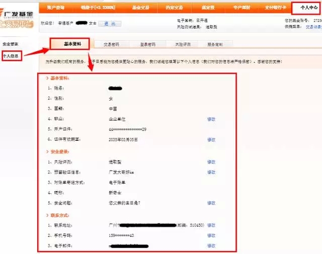 登錄廣發(fā)基金官網(wǎng)(m.enswq.com)“網(wǎng)上交易——個人中心——基本資料”完善所有信息。
