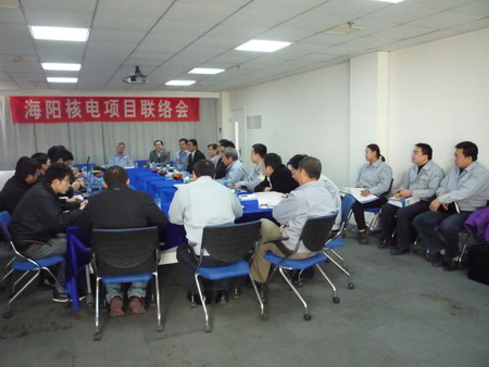 聯(lián)絡(luò)會(huì)主要是對(duì)我公司中標(biāo)海陽核電項(xiàng)目一期工程2*1000MW項(xiàng)目中的開閉試泵和循環(huán)水泵的有關(guān)文件進(jìn)行確認(rèn),以及進(jìn)度計(jì)劃等后續(xù)開始的建造工作進(jìn)行商議。