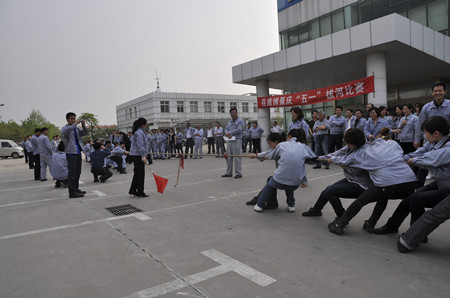 新聞中心為慶祝五?一勞動節,公司工會舉辦“第五屆員工拔河比賽”。4月30日下午,在辦公樓前200多名員工參加的拔河比賽正緊張進行。參賽隊伍共有八支男隊、四支女隊。經過緊張的角逐,焊接物流隊以絕對的優勢力拔頭籌獲得男子冠軍,生產裝配隊獲得男子亞軍;生產部女隊獲女子冠軍。