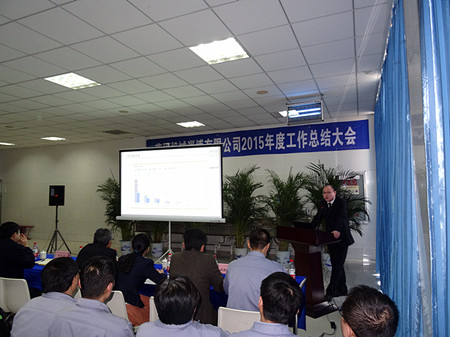 大會由公司副總經(jīng)理姜作棟先生主持,公司總經(jīng)理王正軍先生與大家共同分享了公司2015年經(jīng)營成果并對2016年的工作計劃為大家作了說明。