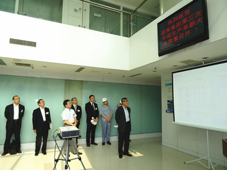 這次生產(chǎn)革新大會(huì)的目的是加速推進(jìn)荏原集團(tuán)內(nèi)部各工廠的生產(chǎn)革新活動(dòng)的開(kāi)展,目標(biāo)是生產(chǎn)周期減半、庫(kù)存減半、最大限度地提高生產(chǎn)效率,降低成本,增強(qiáng)企業(yè)競(jìng)爭(zhēng)力。通過(guò)生產(chǎn)革新活動(dòng),達(dá)到從現(xiàn)場(chǎng)改善提升到管理系統(tǒng)改善、人的改善的目標(biāo),使“產(chǎn)品制作”流程優(yōu)化。在這次大會(huì)上,公司總經(jīng)理王正軍向與會(huì)代表介紹了EMZ的經(jīng)營(yíng)發(fā)展?fàn)顩r,并帶領(lǐng)與會(huì)人員參觀工廠,詳細(xì)介紹了生產(chǎn)革新的進(jìn)展情況。